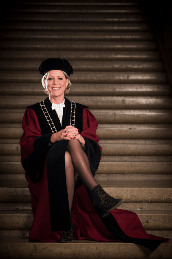 "Ik sta nog wel eens met mijn toga in vol ornaat voor die zaal en dan denk ik ‘wie ben ik om deze hoogleraren een eer te bewijzen?’ Alsof ik hier de rector aan het spelen ben."